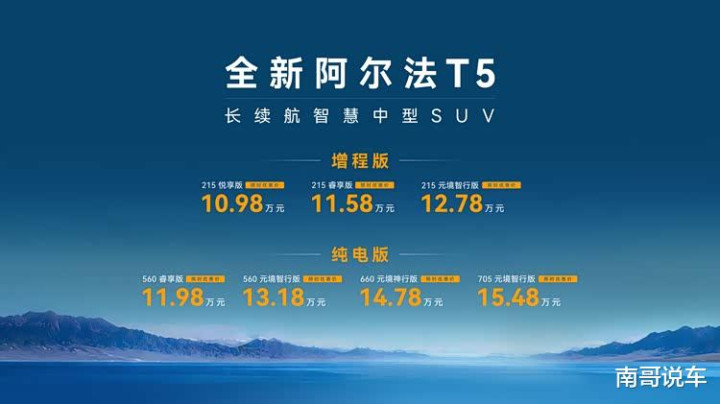 10月28日,“长续航智慧中型SUV”极狐全新阿尔法T5正式上市,包含纯电和增程两种动力形式,共推出7个版型,限时优惠价格10.98万元—15.48万元。随同新车上市,北汽元境智能技术架构也一并发布,全新阿尔法T5成为首款搭载元境智行辅助驾驶的车型,新T5“左揽元境智行,右享神擎增程”,重塑SUV价值标杆。