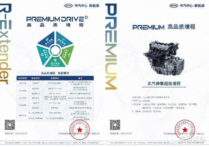 据了解,北汽神擎增程动力历经三轮次耐久验证、30万次启停耐久验证,平台耐久累积验证超2万小时,获得了中汽研“高品质增程”权威认证。